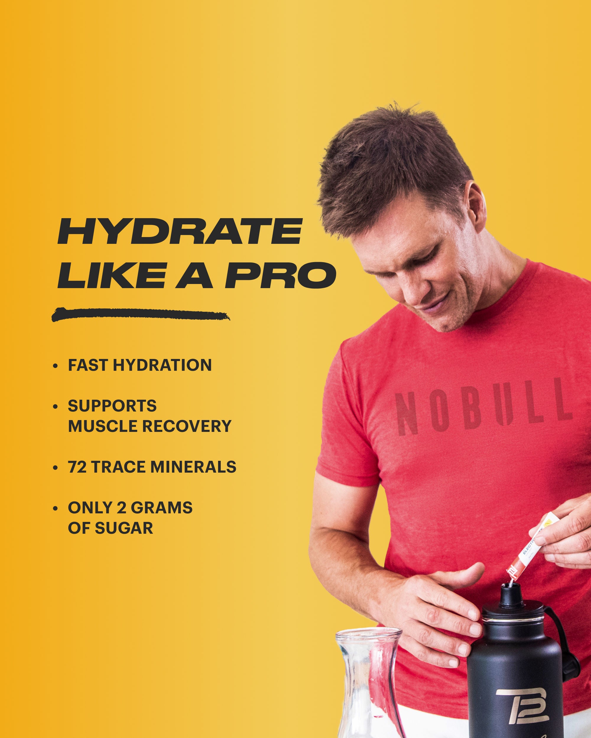 We lose many of our body’s natural minerals throughout the day, so it’s essential to replenish them. TB12 Electrolytes contain 72 trace minerals sourced naturally from the Great Salt Lake. These elements amplify hydration by helping you fully absorb the water you drink, especially when you’re working out.* Electrolytes support everything from muscle function to regulating fluid balance to immune function and cell growth. Tom didn't win 7 Super Bowls dehydrated.