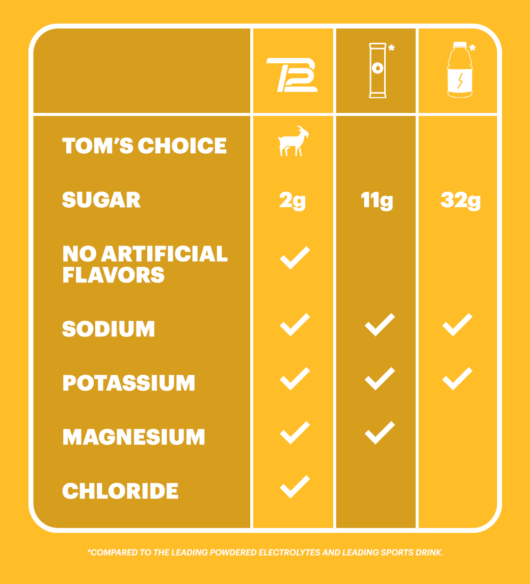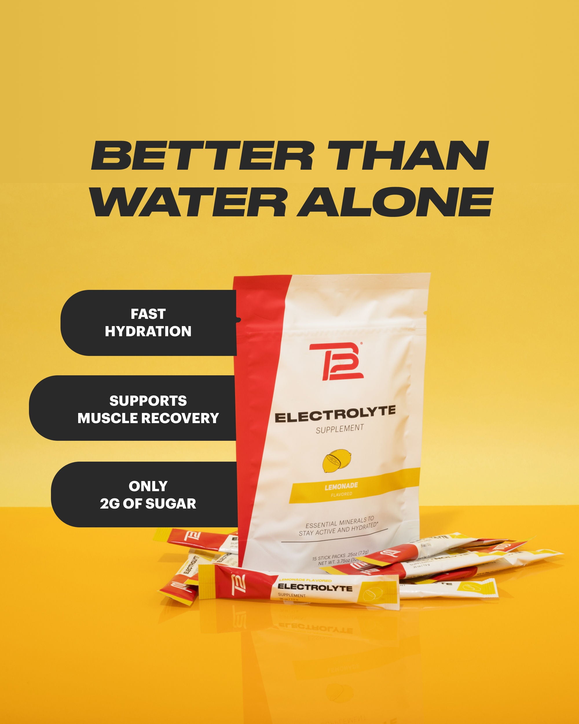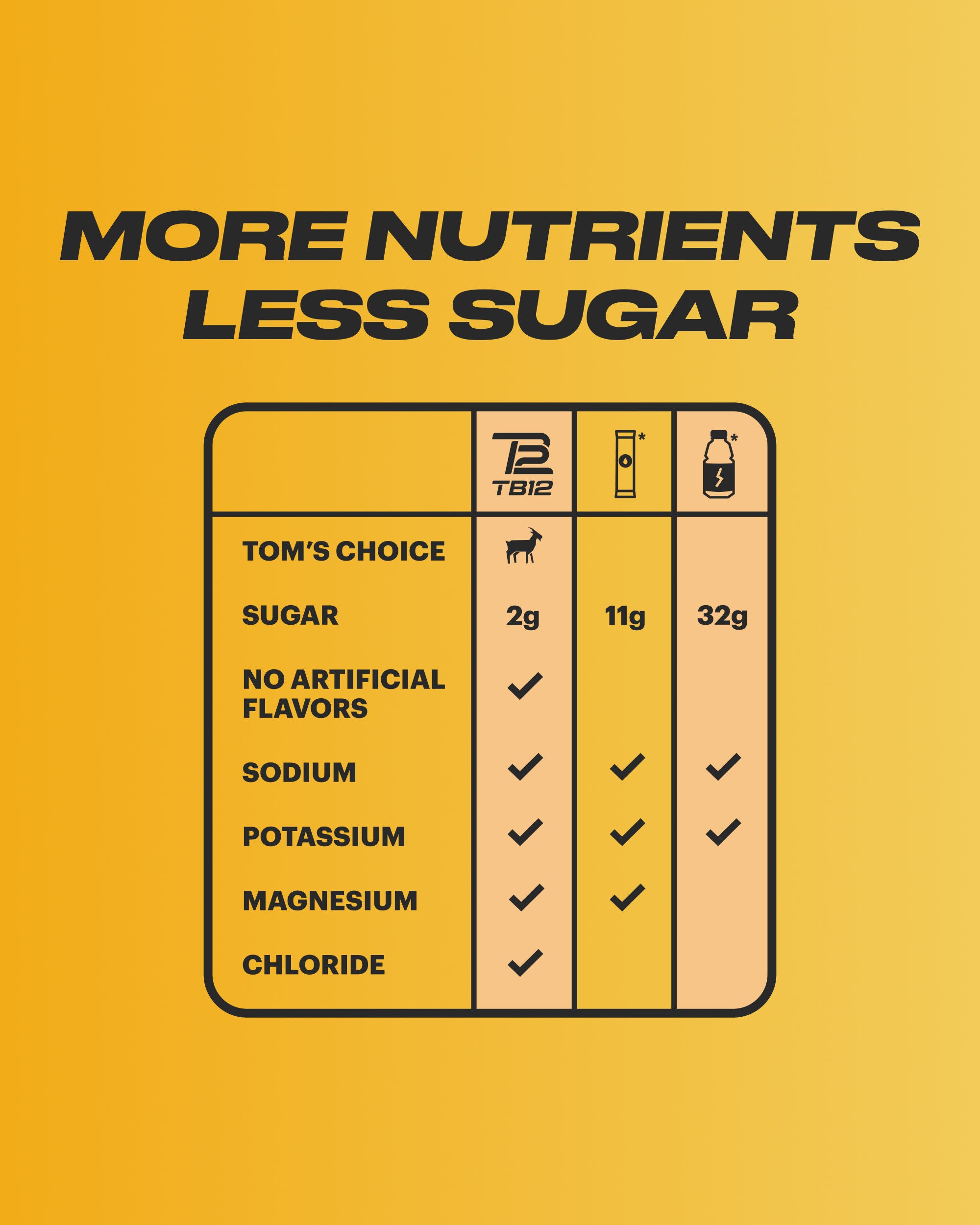 With only 2g of sugar per serving, TB12 Electrolytes are a great alternative to sugary sports drinks. They offer all the nutrients you need to replenish, with a fraction of the sugar you see from our competitors.