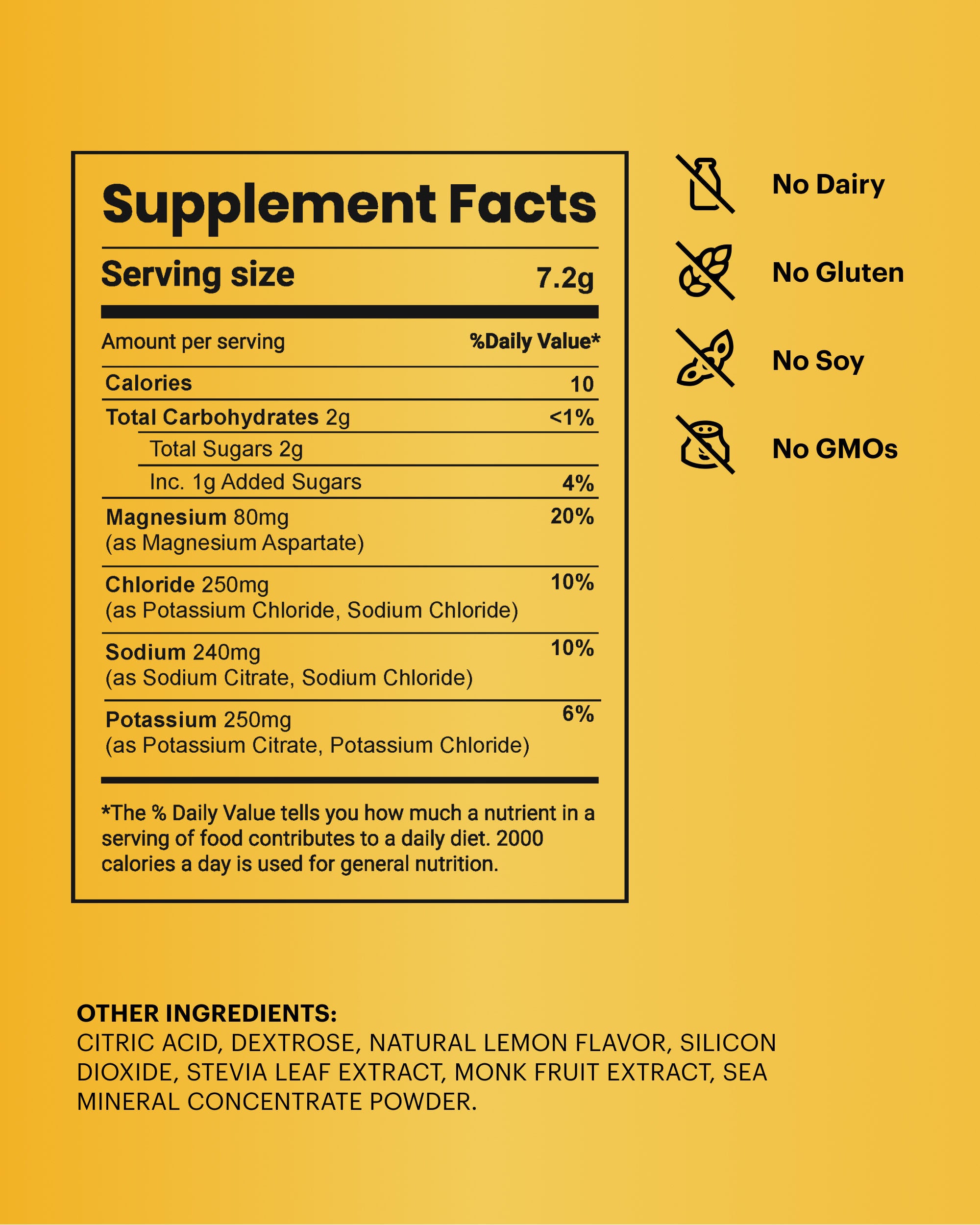 - Free from: Dairy, Gluten, Soy, GMOs, and Preservatives