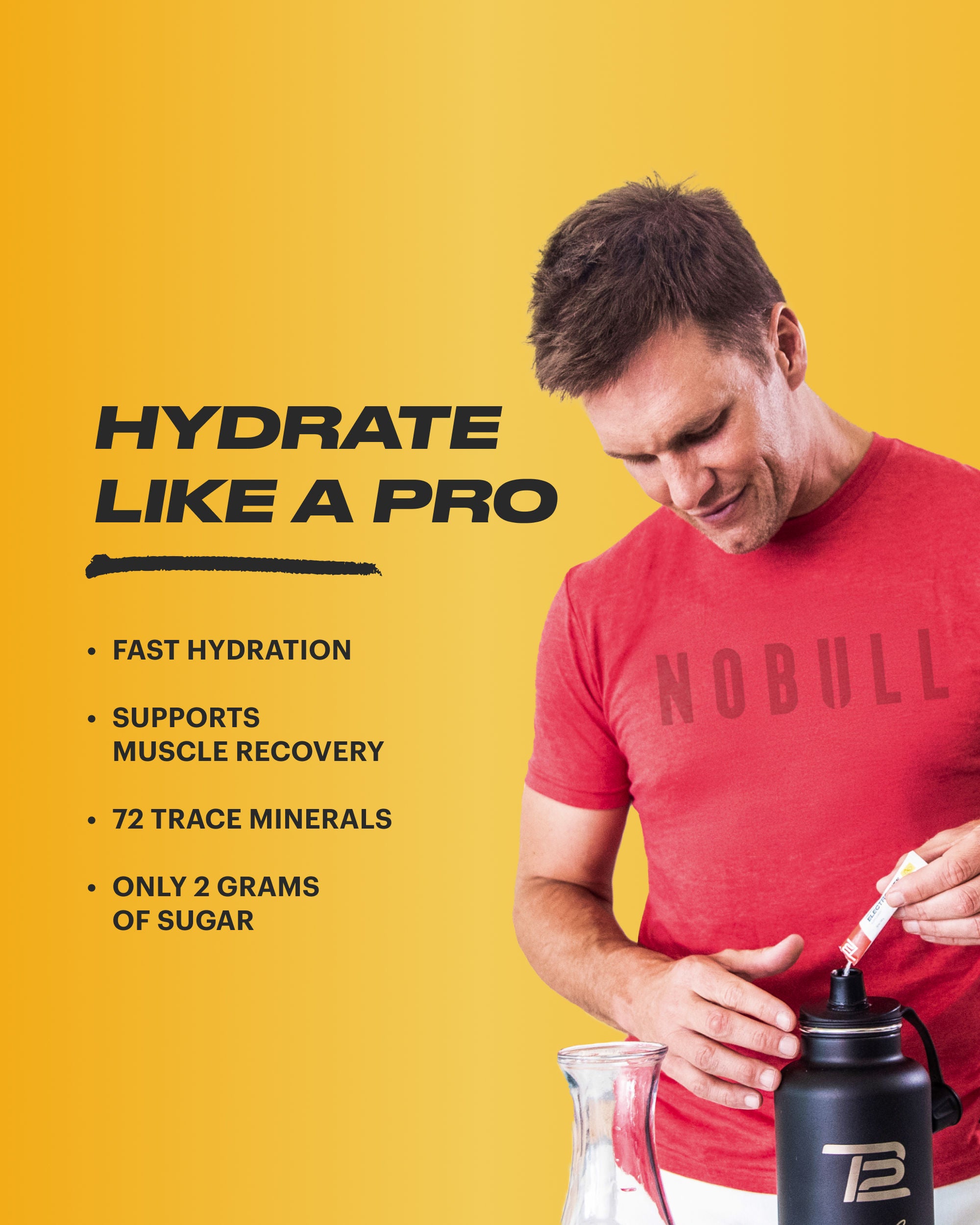 We lose many of our body’s natural minerals throughout the day, so it’s essential to replenish them. TB12 Electrolytes contain 72 trace minerals sourced naturally from the Great Salt Lake. These elements amplify hydration by helping you fully absorb the water you drink, especially when you’re working out.* Electrolytes support everything from muscle function to regulating fluid balance to immune function and cell growth. Tom didn't win 7 Super Bowls dehydrated.